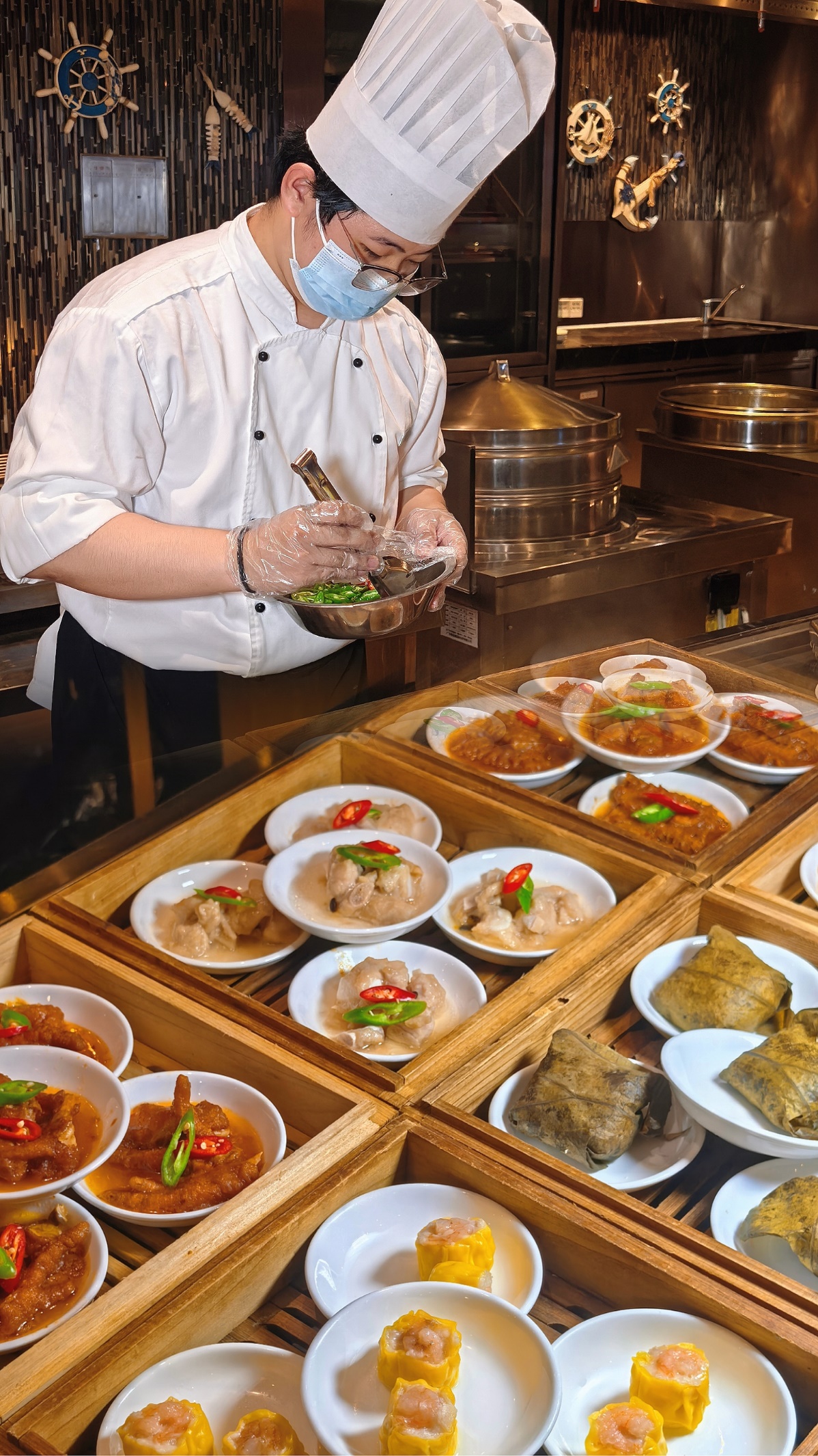 作为每月主题的特别福利,9月派送菜为“芝士黑虎虾配香煎肥肝”,融合了海鲜的鲜美与肥肝的醇厚,带来独特的味觉享受。派送菜每月更新,持续为用餐体验增添新鲜感。自助午餐每周六/日12:00-14:00,畅享品质美味;自助晚餐每周五至周日17:30-21:00,菜品更为丰盛,尤其以“开海季”的海洋珍馐为主打,堪称味蕾狂欢。